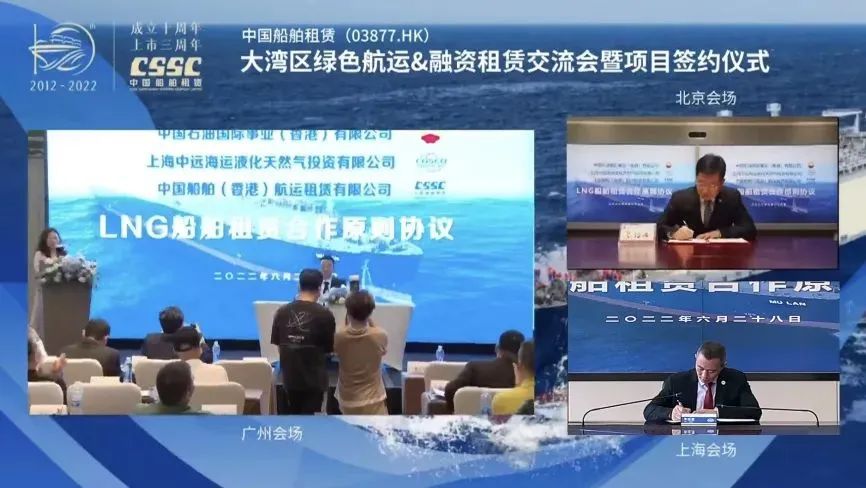 6月28日,在大湾区绿色航运&融资租赁交流会上,中远海运、中石油、中国船舶三大央企再度携手,通过“大货主、大船东、大船厂”强强联合,探索中国LNG产业链发展新模式。作为会议重头戏之一,中远海运能源董事总经理朱迈进、中石油国事总经理武军利、中船租赁总经理李晞共同签署“LNG船舶租赁合作原则协议”,以光租+期租新模式提升央企合作源动力。