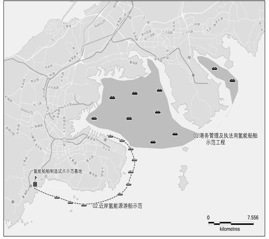 氢燃料电池智能公务船示范项目:在大连湾、大窑湾、小窑湾附近划定氢燃料电池智能公务船示范区,开展氢燃料电池公务船应用示范。